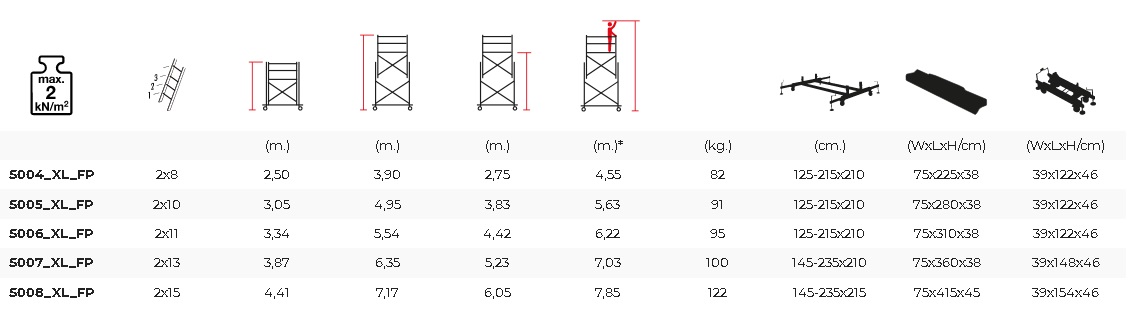 TeleSafe XL_FP , dvodelne aluminijumske skele pružaju usluge u mnogim oblastima sa svojim posebnim sistemom spojeva, lako podesivim po visini, bezbednim, laganim, lako demontažnim konstrukcijama. Konstrukcija, koja je izgrađena na čvrstoj aluminijumskoj konstrukciji, ojačana je čeličnim podupiračima.