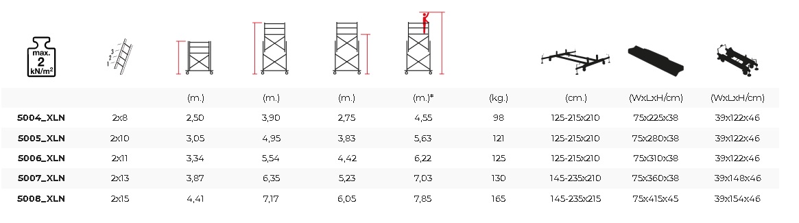 TeleSafe XLN , dvodelne aluminijumske skele pružaju usluge u mnogim oblastima sa svojim posebnim sistemom spojeva, lako podesivim po visini, bezbednim, laganim, lako demontažnim konstrukcijama. Konstrukcija, koja je izgrađena na čvrstoj aluminijumskoj konstrukciji, ojačana je čeličnim podupiračima.